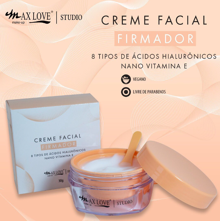 O creme firmador é formulado com 8 tipos de ácidos hialurônico com moléculas de alta e baixa densidade, para proporcionar hidratação para uma pele.