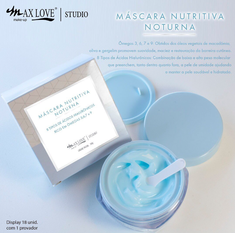Um máscara nutritiva noturna max amor foi desenvolvida para complementar sua rota de cuidados faciais noturna.