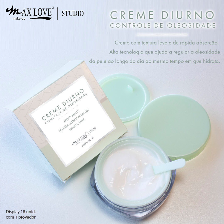 Creme diurno controle de oleosidade max amor tem textura ultraleve em gel e de rápida absorção.