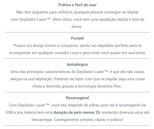 * Pode usar para o rosto, braços, sob os braços, pernas, biquíni e barriga etc.